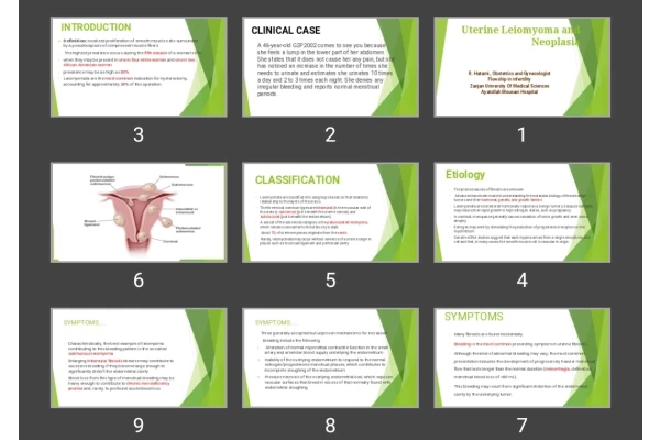 مشخصات فایل: پاورپوینت Uterine Leiomyoma and Neoplasia تعداد صفحات ۲۹ فایل پاورپوینت pptx می باشد. تعدادی از اسلایدهای ابتدایی با کیفیت بهتر جهت مشاهده درج شده است.