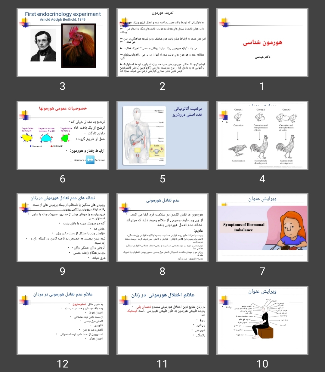 مشخصات فایل:پاورپوینت هورمون شناسیتعداد صفحات ۷۳فایل پاورپوینت ppt می باشد.تعدادی از اسلایدهای ابتدایی با کیفیت بهتر جهت مشاهده درج شده است.