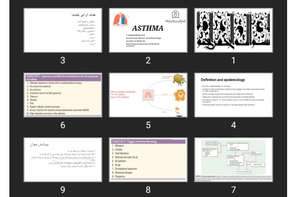 مشخصات فایل: پاورپوینتASTHMAتعداد صفحات: ۴۰فایل pptx می باشد.تعدادی از اسلایدهای ابتدایی با کیفیت بالاتر جهت مشاهده درج شده است.