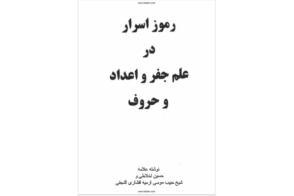 شامل: کتاب رموز الاسرار در علم جفر کتابی کامل و جامع در زمینه آموزش علم جفر و اعداد و حروف و استخراج اسماء علوی و سفلی و ظاهر و باطن حروف و حروف مستحصله و بسط حروف و اعداد و استخراج اسماء الله با اسم صاحب دعوات می باشد