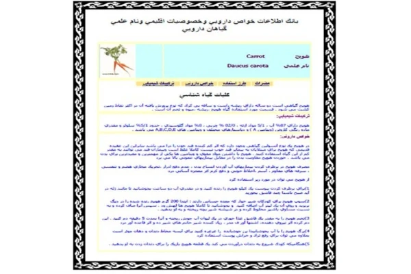 کتاب ” بانک اطلاعات خواص دارویی و خصوصیات اقلیمی و نام علمی گیاهان دارویی ” شامل 213 صفحه رنگی است که به بررسی خصوصیات دارویی تک تک گیاهان و میوه جات میپردازد. این کتاب یک منبع بسیار عالی برای پی بردن به خصوصیات گیاهان دارویی و خواص آنها میباشد