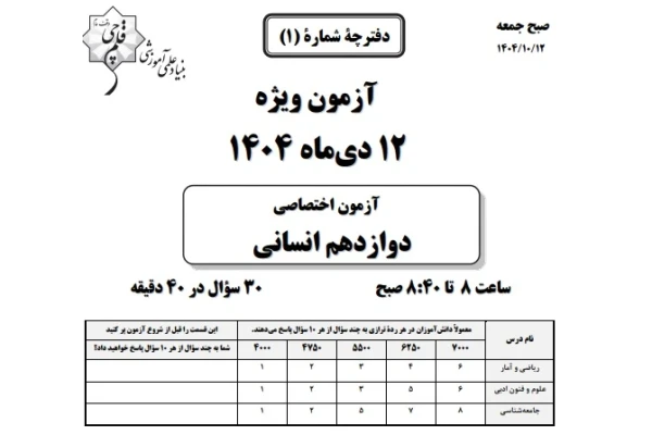 #نمونه سوالات قلمچی پایه دوازدهم انسانی (۱۲ دی ۱۴۰۴ )