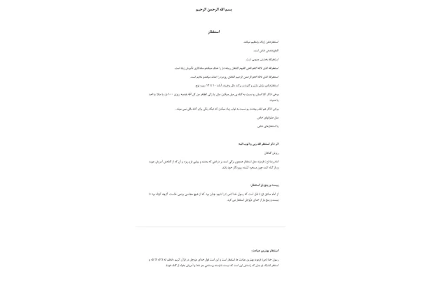 شامل: کلید آمرزش گناهان اثر ذکر استغفراللّه ثواب استغفار معنای توبه اقرار به گناهان در میان دو صلوات تفاوت استغفار و توبه بهترین ذکر برای استغفار استغفار ۷۰ بندی حضرت علی(ع) انواع استغفار و برکات آن و...